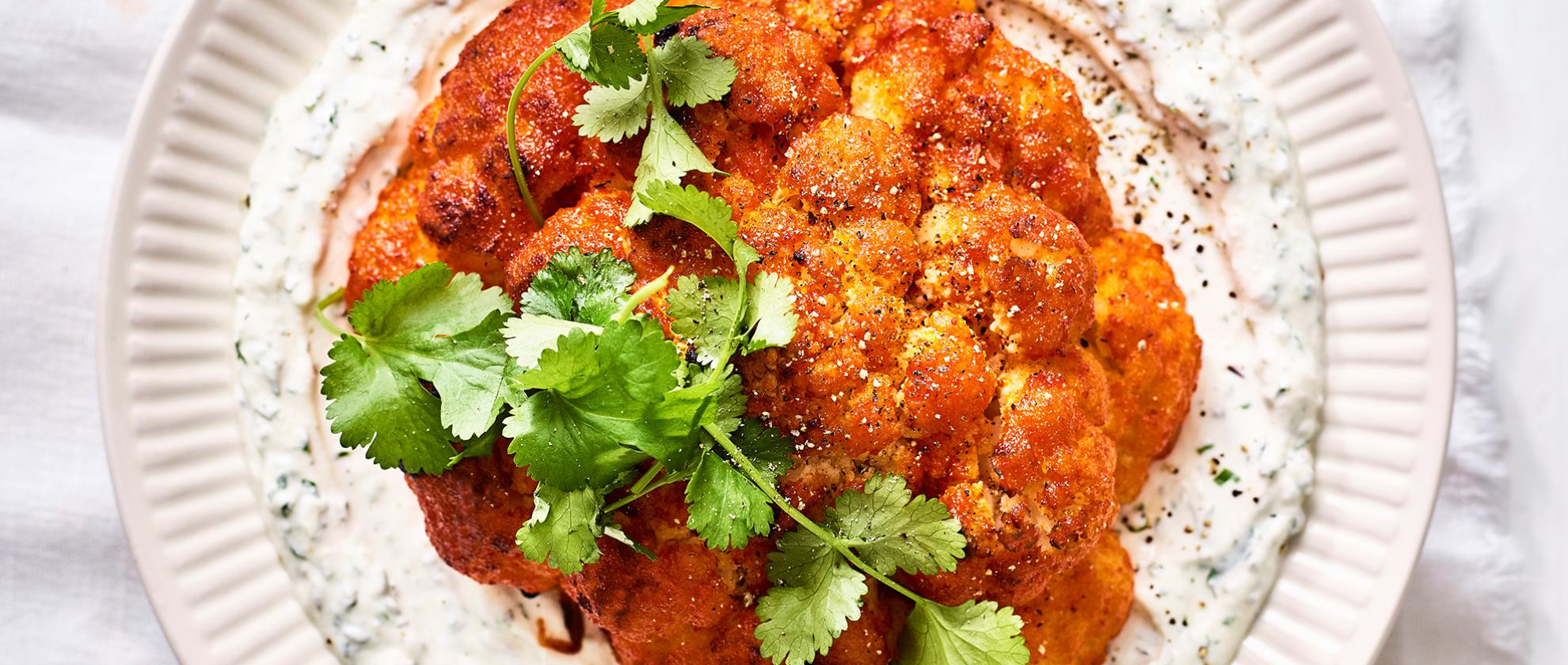 Chou-fleur rôti avec une sauce fraîche au yaourt