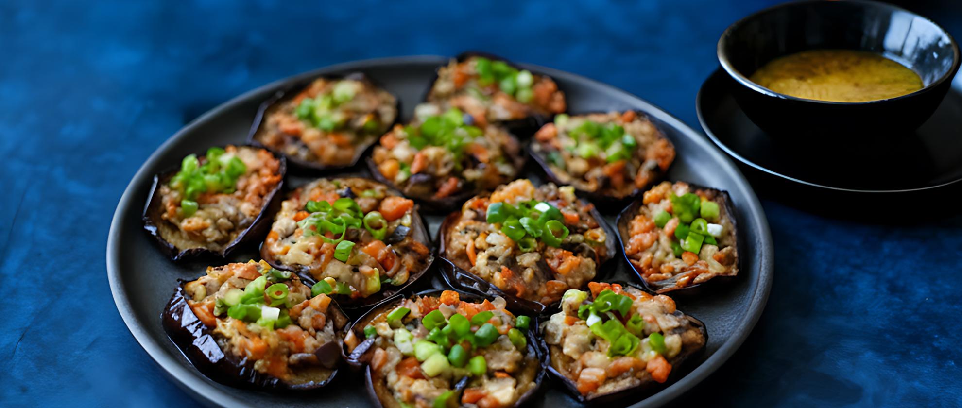 Bestrooi de plakken aubergine met zout en laat 2 uur uitlekken in een vergiet. Dep de plakken goed droog met keukenpapier