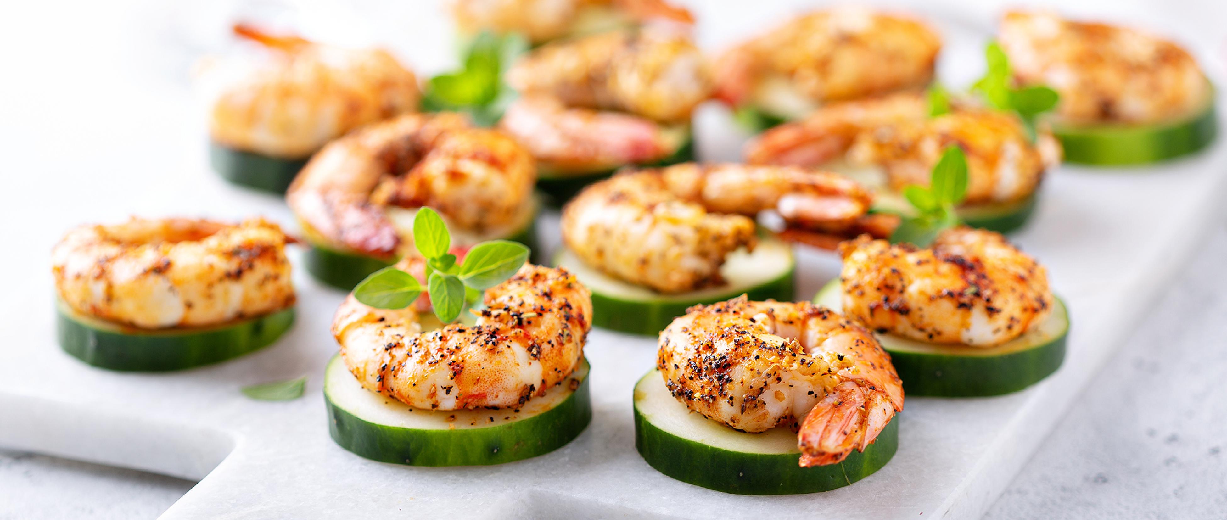 Komkommertoastjes met spicy shrimp