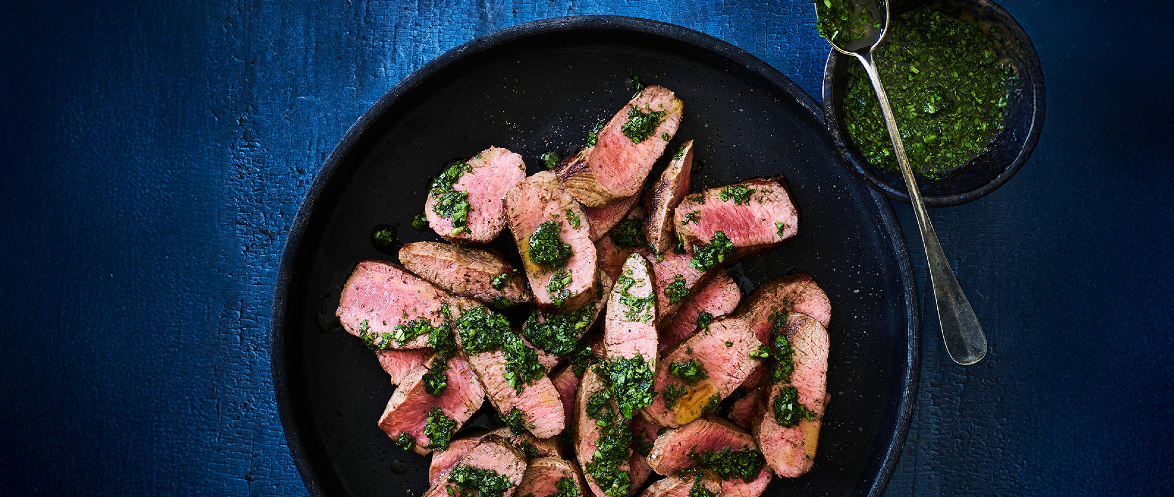 Laat het vlees 30 minuten op kamertemperatuur komen. Dep het goed droog met keukenpapier en breng het rondom rond op smaak met zwarte peper en fleur de sel. Verhit olijfolie in een braadpan en bak hierin de lamsfilets rondom rond mooi goudbruin aan. Laat ± 3 minuten per kant bakken voor een rosé resultaat. Laat het vlees daarna onder folie nog 10 minuten rusten voor je het in plakjes snijdt.