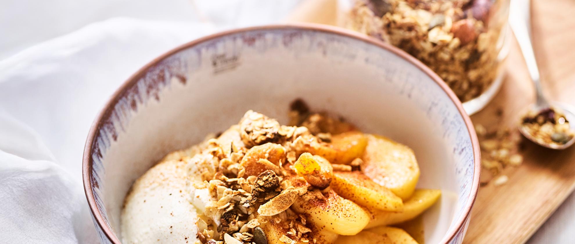 Yaourt grec avec pommes braisées et granola fait maiso