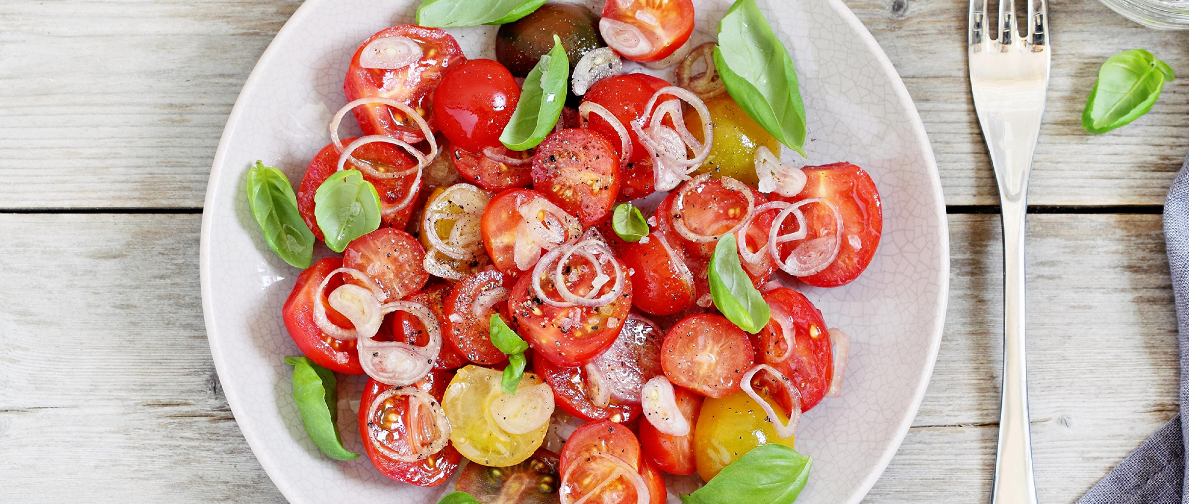 Salade de tomates cerises et échalotes marinées