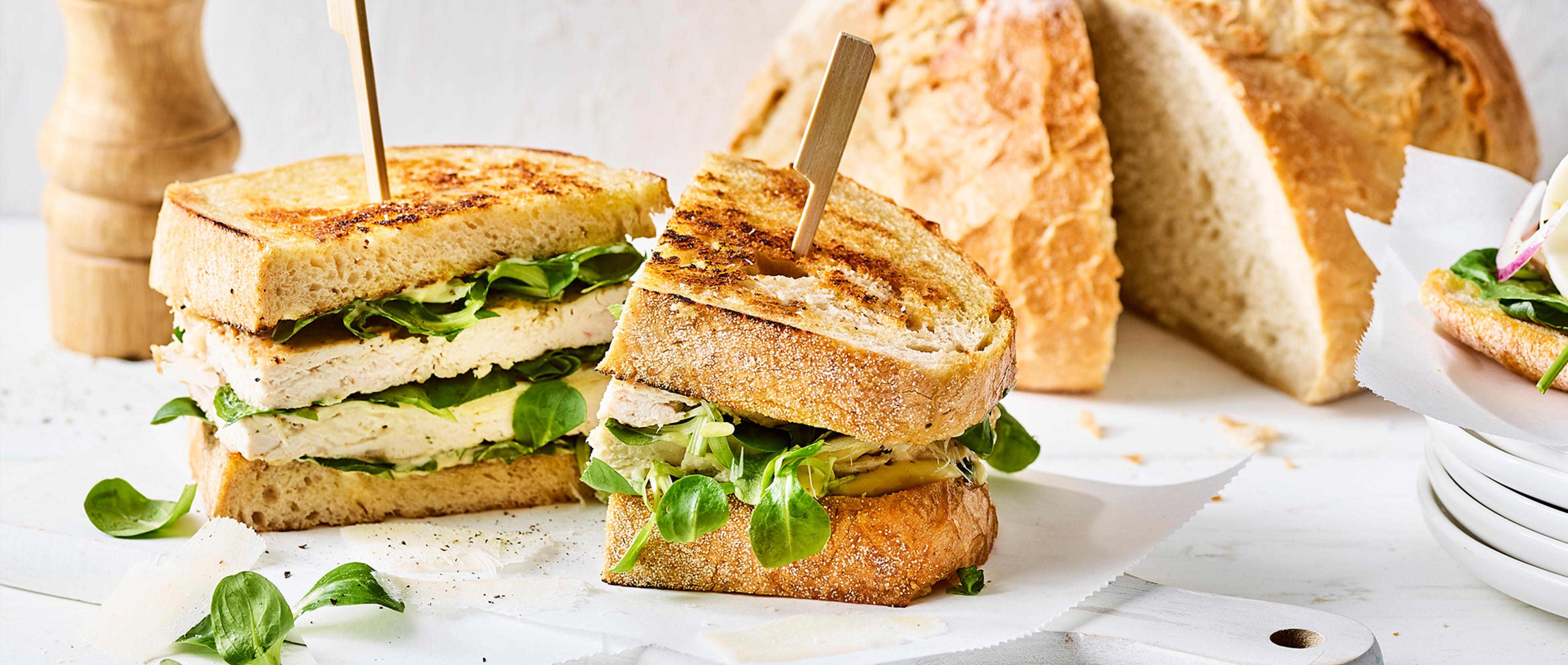 Glissez le demi-blanc de poulet entre deux feuilles de film alimentaire et aplatissez la viande à l’aide d’un attendrisseur ou avec le dos d’une louche. Salez et poivrez. Grillez ou poêlez le poulet à l’huile d’olive.