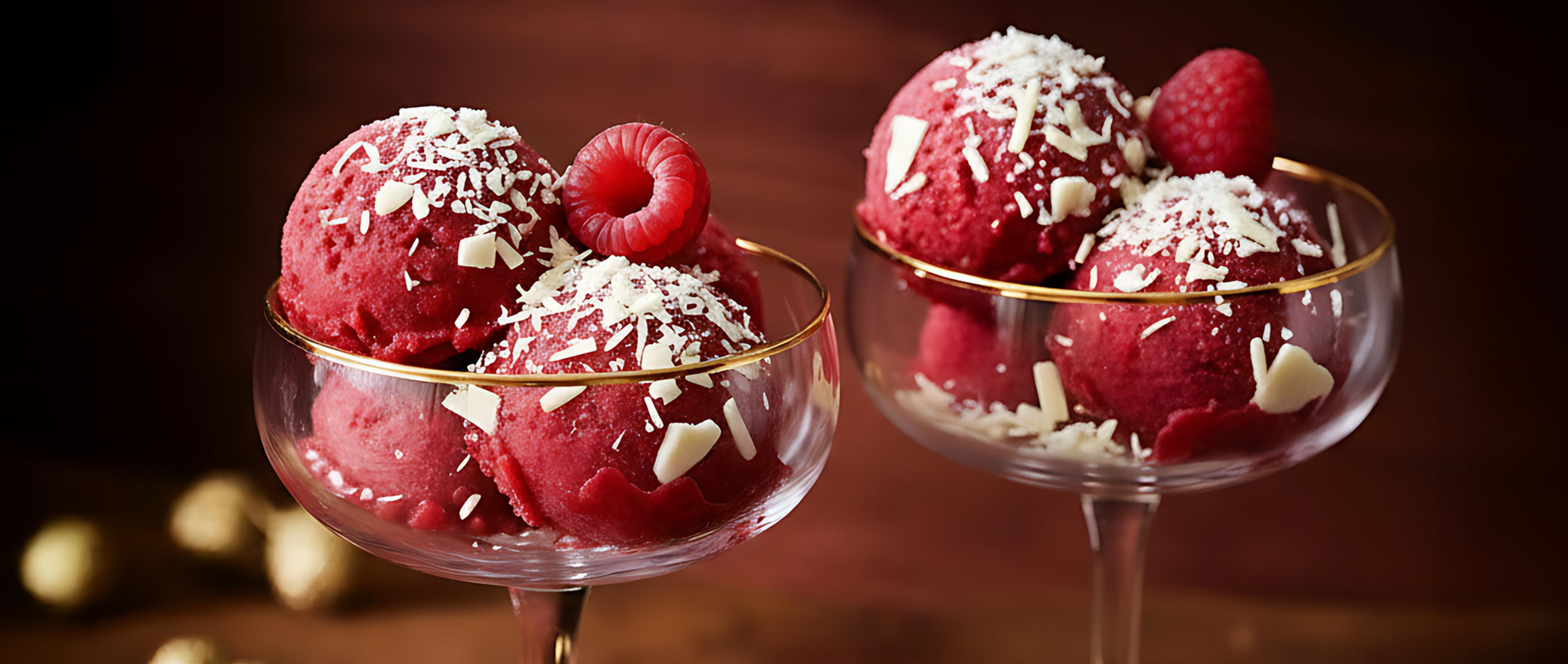 Sorbet aux framboises fraîches et chocolat blanc