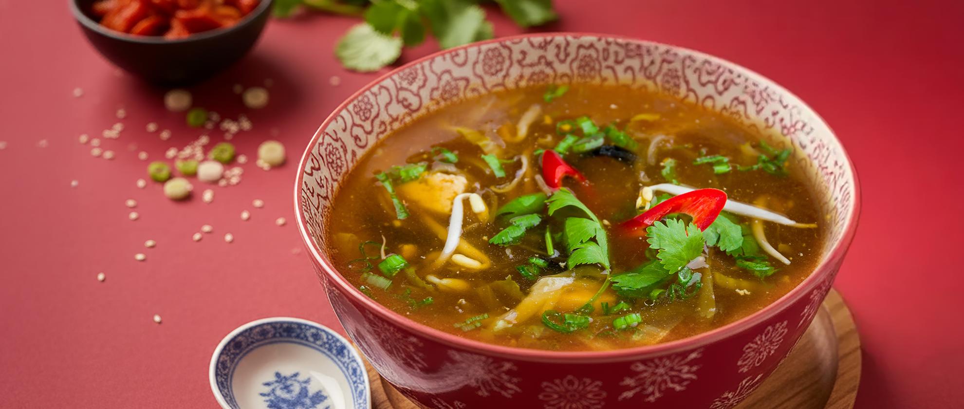 Réservez quelques cuillères de bouillon et portez le reste à ébullition avec les shiitakés tranchés, les pousses de bambou, le vinaigre de riz, la sauce soja, le gingembre râpé et la sauce chili.