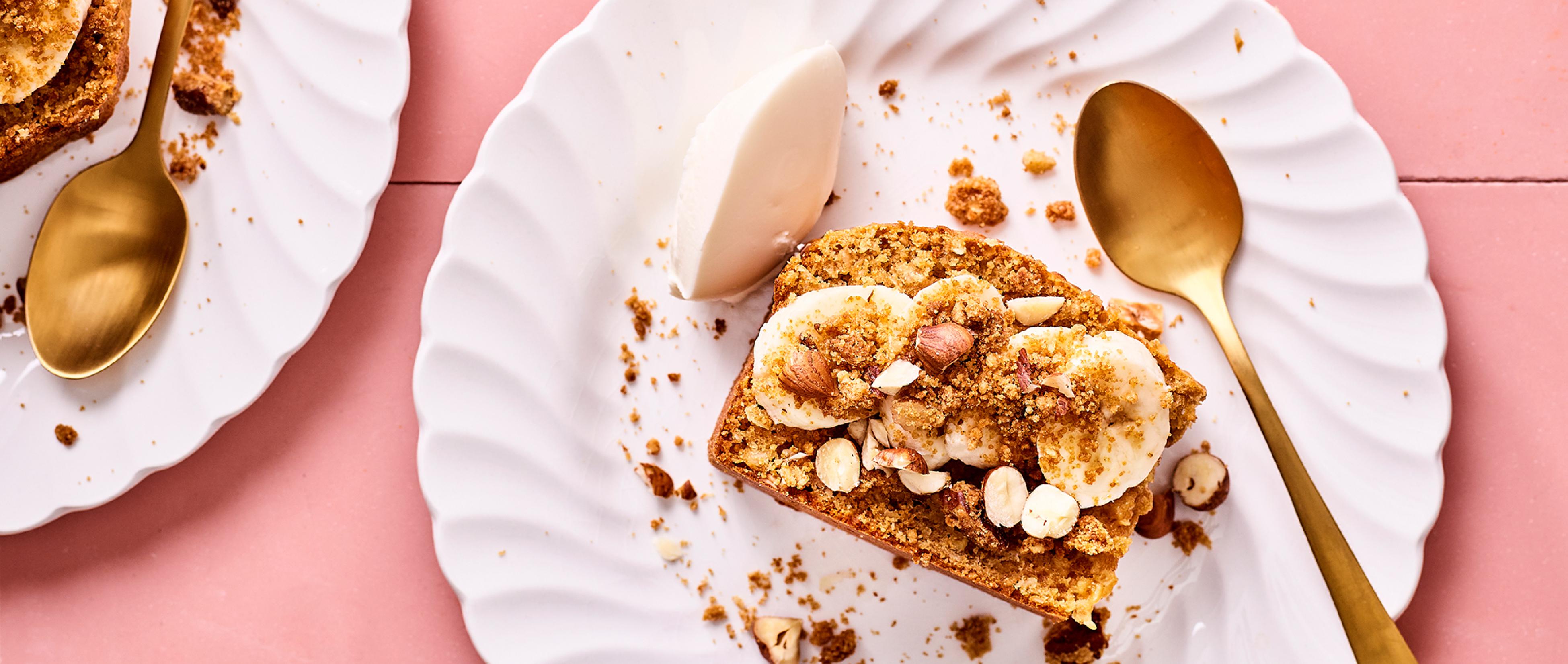 Bananencake met havermout en crunchy topping