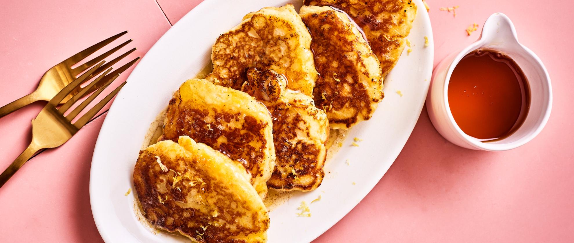 Werk de pannenkoeken af met extra boter en ahornsiroop.