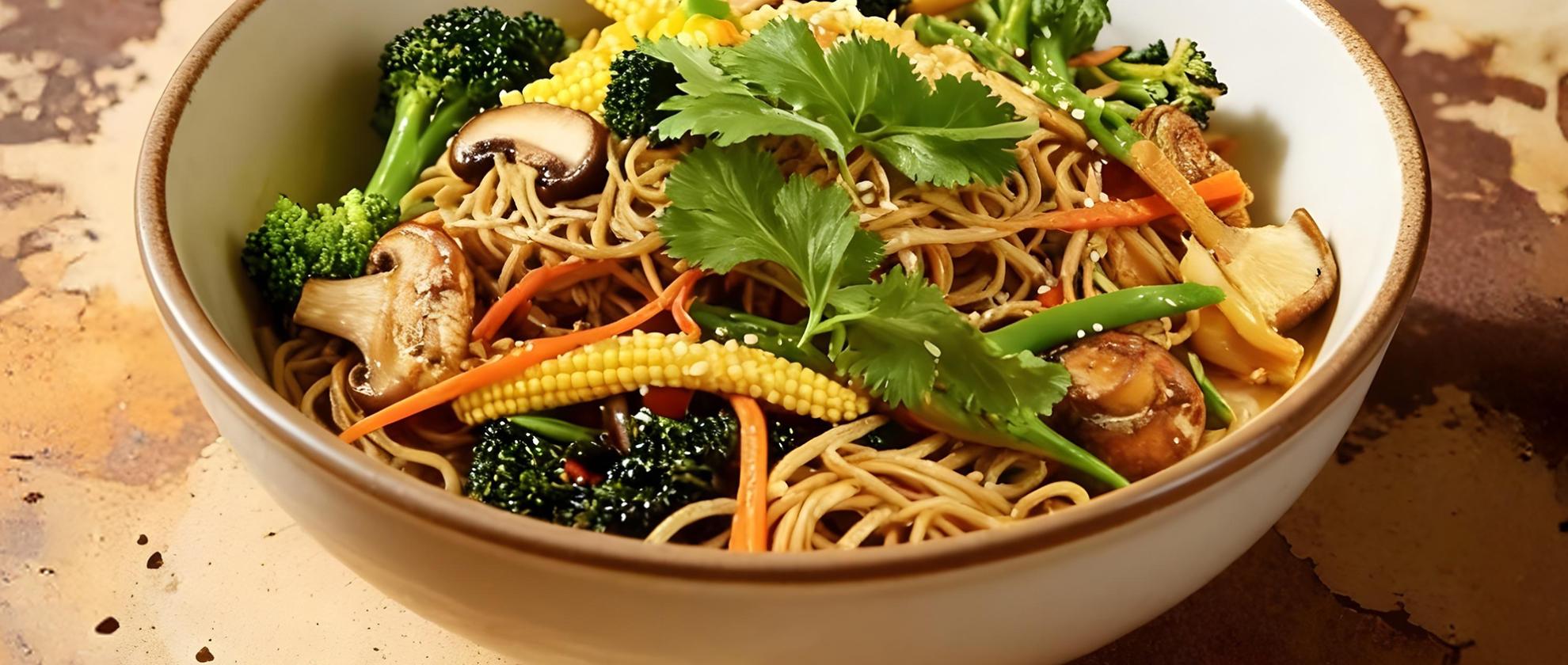 Kook de noedels in een grote pot met lichtgezouten water en giet af. Voeg de noedels toe aan de wok. Voeg de sojasaus en de zwartebonensaus toe en roer goed. Verdeel over vier kommen en werk af met sesamzaadjes en koriander.