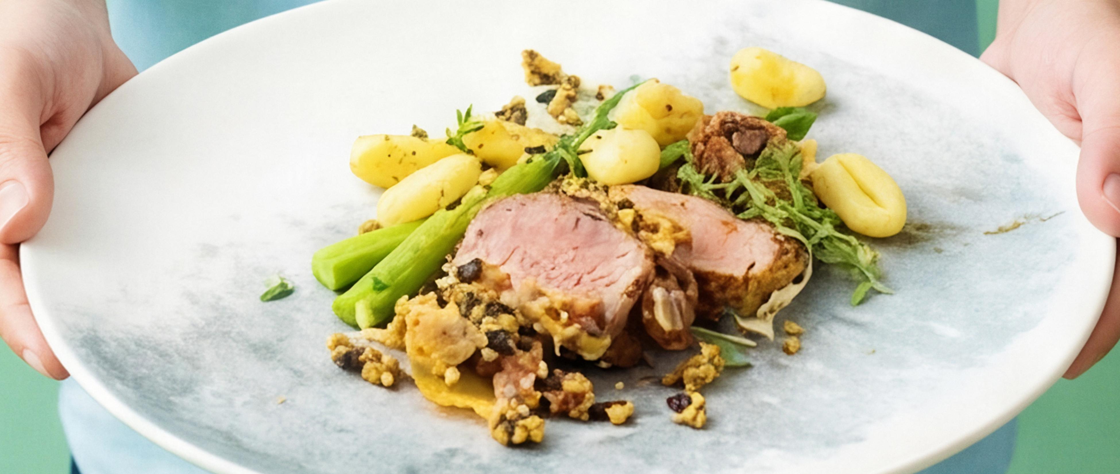 Varkenshaasje in pistachekorst met krieltjes