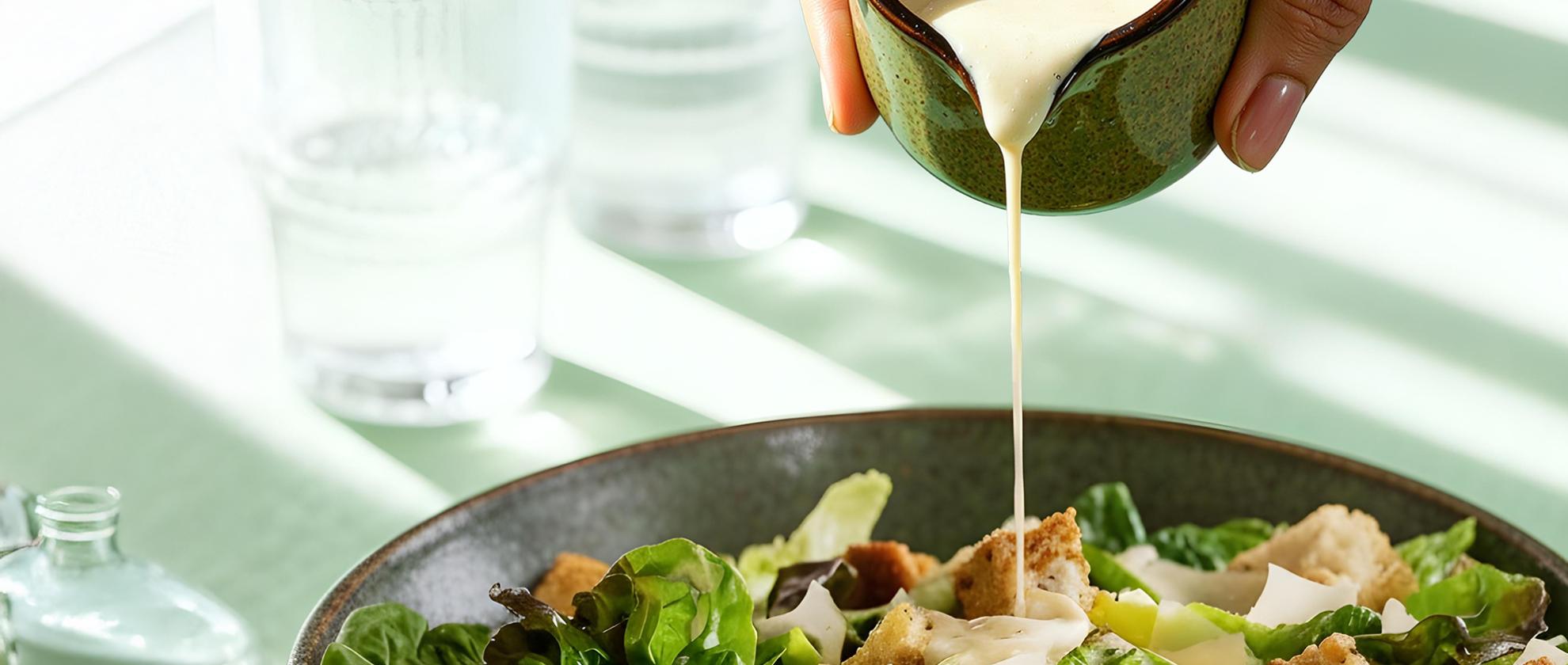 Plet de ansjovisfilets met het teentje geperste knoflook. Meng met het citroensap, de mayonaise, de zure room en de worcestersaus. Breng op smaak met peper en zout.